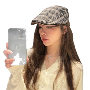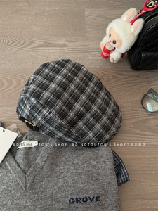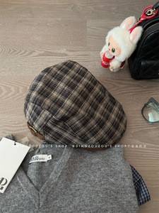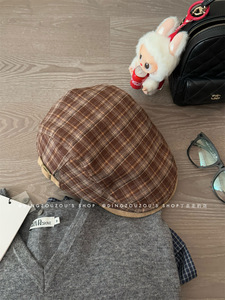 2025年日系氛围感复古格子前进帽女秋冬百搭显脸小英伦贝雷帽子潮