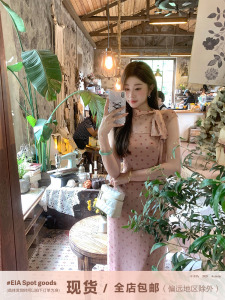 EIA一尧【智媛oni】波点连衣裙夏韩系高智感气质温柔显瘦绑带长裙