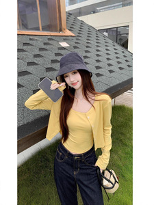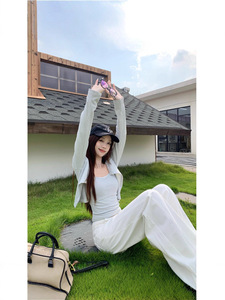 【自家工厂现货】韩系长袖开衫条纹背心吊带秋季新款甜辣套装女
