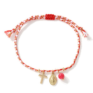 跨境热销十字架圣母像吊坠彩虹色手绳时尚小众设计手链女生批发