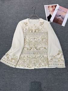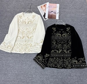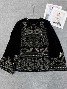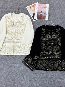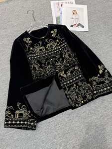 南油批发2025年秋季新款 重工绣珠花真丝丝绒外套上衣 新中式国风
