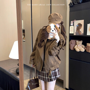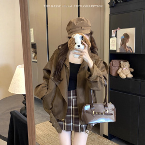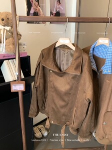 实拍 2025麂皮绒机车外套秋季复古美拉德宽松慵懒翻领廓形感夹克