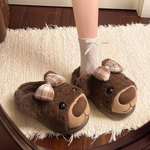 踩屎感舒适包头拖鞋女外穿2025秋冬季新款可爱蝴蝶结小熊毛毛拖鞋