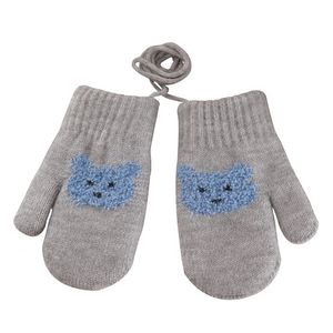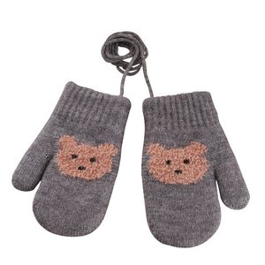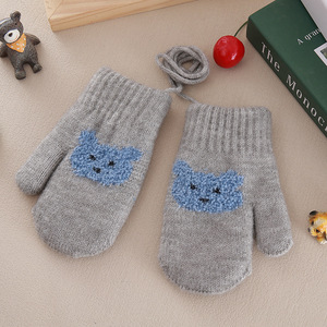 双层加绒加厚0-3岁跨境热销儿童手套男女宝宝小童针织毛线卡通熊
