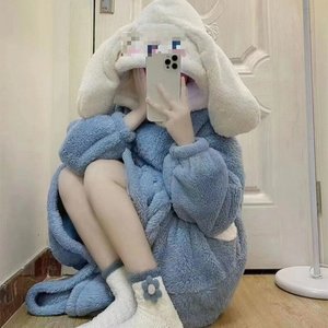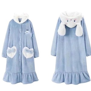 珊瑚绒贵玉狗睡袍女冬季加厚加绒睡裙卡通长款睡衣外穿刺绣家居服