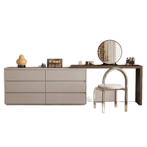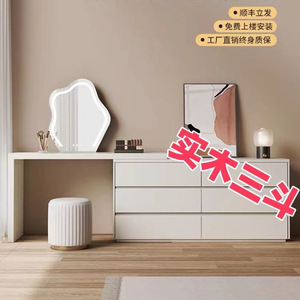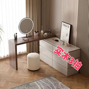 意式极简实木梳妆台储物柜床尾收纳柜斗柜一体卧室轻奢小型化妆桌
