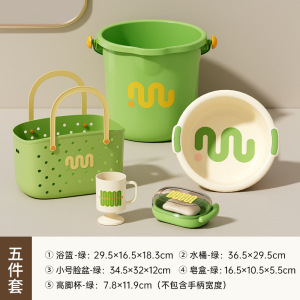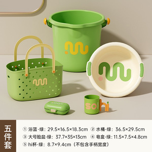 hi杯+手提篮+32#脸盆+带盖皂盒+水桶(全绿)