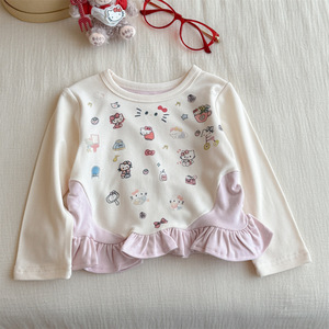 甜小司女童长袖T恤新款洋气宝宝印花可爱上衣百搭儿童圆领打底衫