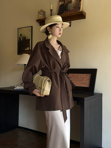 【咖啡色】风衣外套 含本布腰带