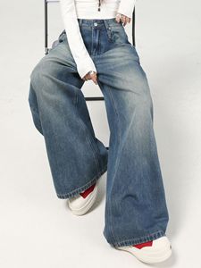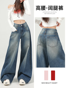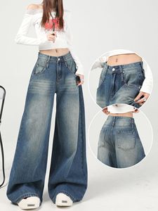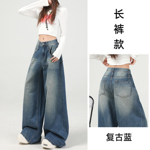 美式复古阔腿牛仔裤女秋季2025新款高腰宽松梨形身材慵懒风直筒裤