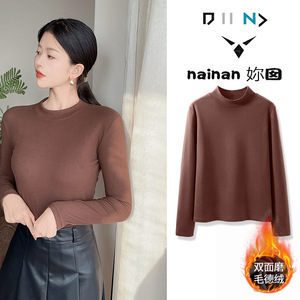 双面德绒打底衫女2025秋冬新款纯色亲肤修身显瘦保暖内搭打底上衣