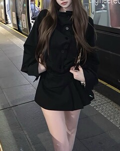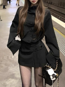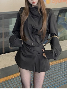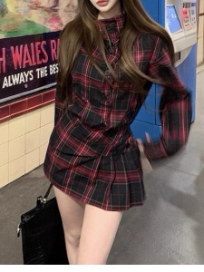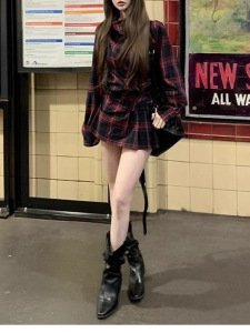 Suuuicee 贝克街魔女 复古格纹立领设计长袖连衣裙单排扣辣妹短裙