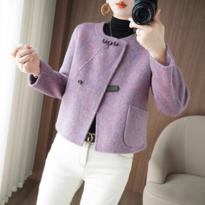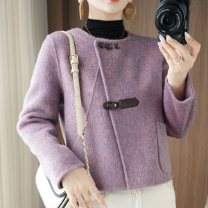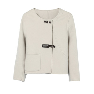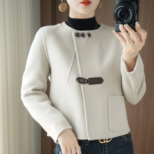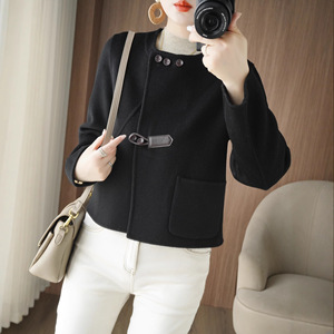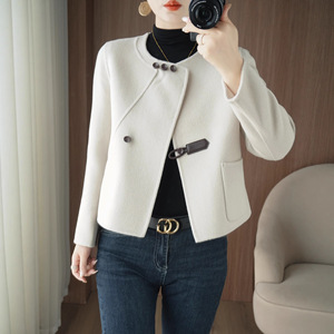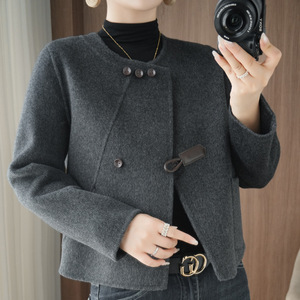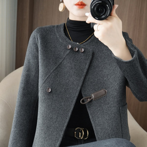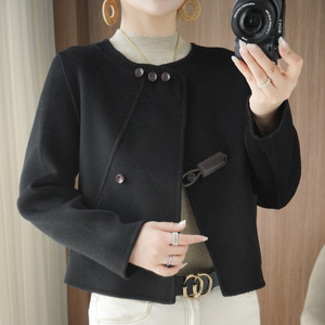 小香风双面羊绒大衣女短款上衣新款气质圆领小个子100%羊毛呢外套