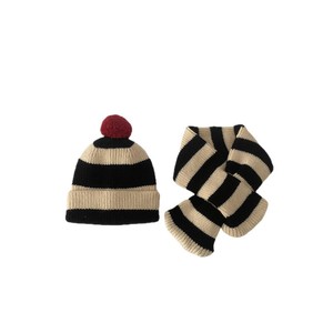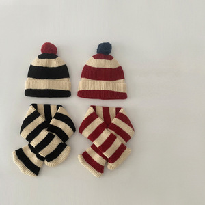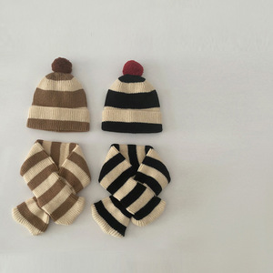 圣诞帽子秋冬婴儿小月龄时尚针织洋气条纹穿搭毛线帽保暖围巾套装