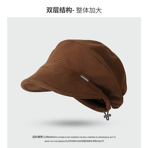 秋冬新款复古文艺灯芯绒银标报童帽时尚休闲百搭软檐抽绳贝雷帽