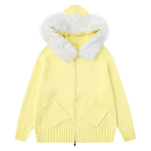 衣品男装软糯慵懒风温柔连帽毛领针织衫小个子女春秋新款休闲毛衣