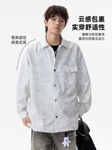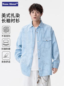 NASA美式扎染复古长袖衬衫春秋季2025新款宽松舒适休闲男衬衣外套