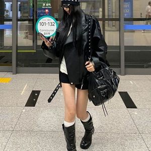 美式时尚机车皮衣外套女2025年秋季新款宽松百搭复古皮夹克洋气