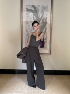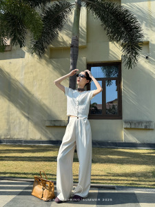 鹭青一原创【行舒】经典斜纹西装裤女春季活褶设计垂感休闲阔腿裤