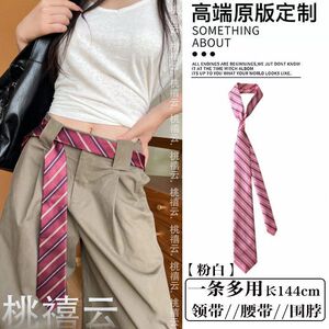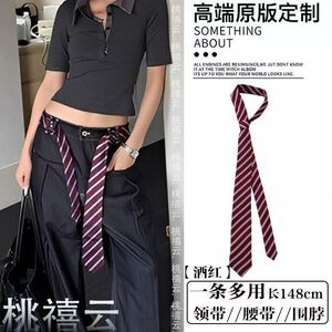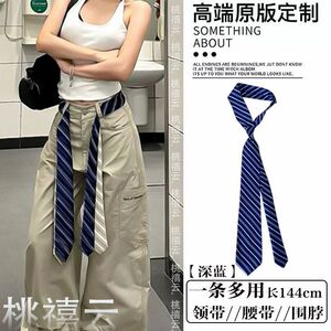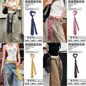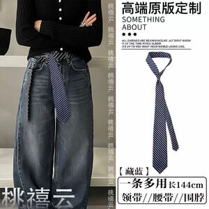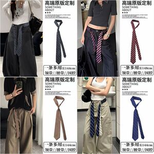 复古条纹领带腰带男女通用丝巾新款百搭小众腰链配裤子系腰巾配饰