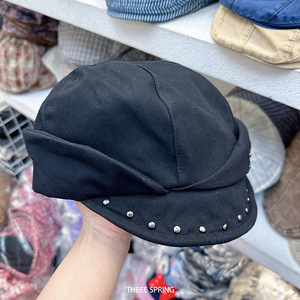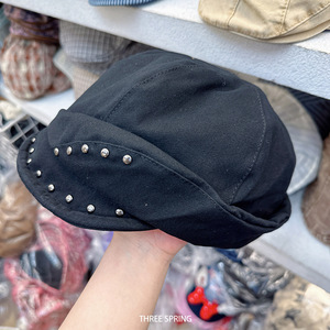 批发韩国2025年新款日系小众复古铆钉不规则八角帽显脸小报童帽女