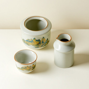 汝窑-千里江山-温酒器一壶两杯(二两用)