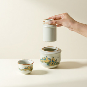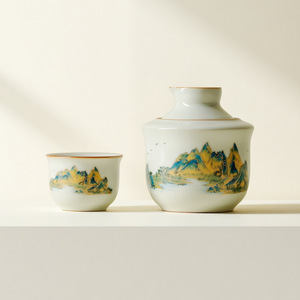 汝窑-千里江山-温酒器一壶一杯(二两用)