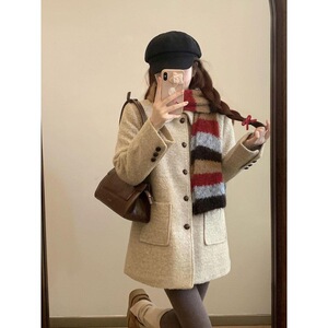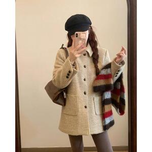 大码胖mm小香风翻领毛呢外套女秋气质设计高级感宽松长袖呢子大衣