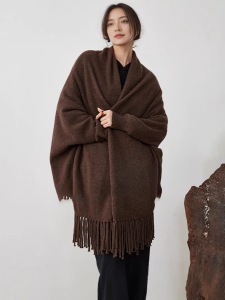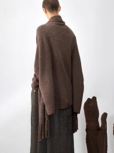 设计感100羊毛针织披肩外搭女开衫秋冬毛衣外套慵懒风斗篷上衣