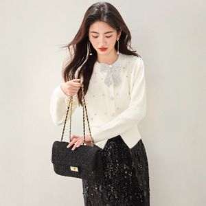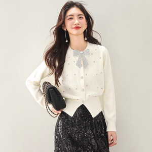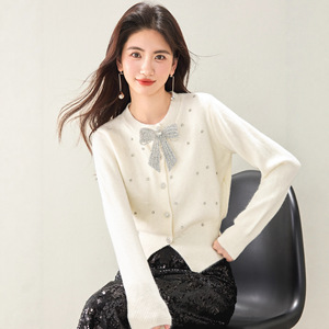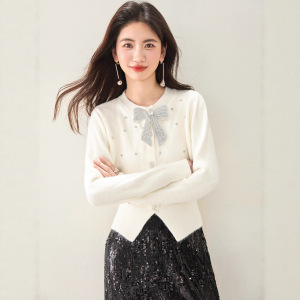 2025法式小香风烫钻蝴蝶结针织开衫女长袖秋冬软糯百搭针织上衣潮