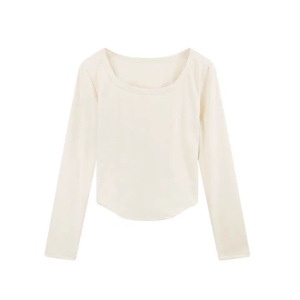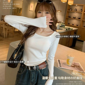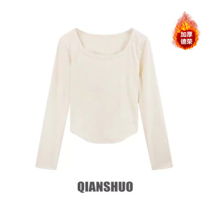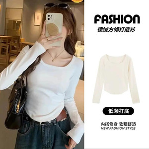 德绒方领长袖t恤女2025新款秋冬内搭打底衫辣妹修身显瘦短款上衣