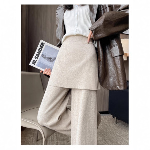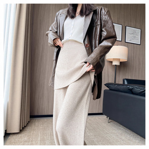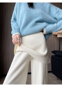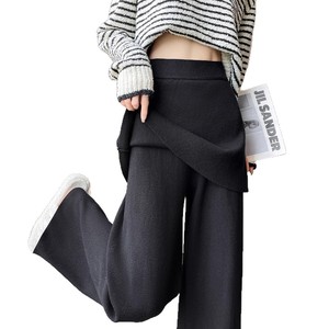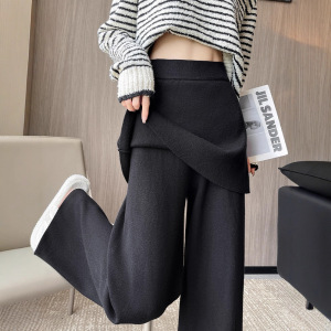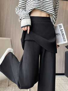针织阔腿裤女秋冬新款设计感假两件屁帘高腰宽松垂感休闲拖地裤子