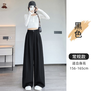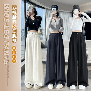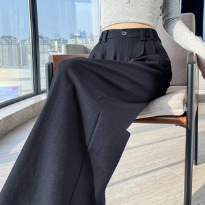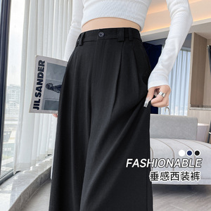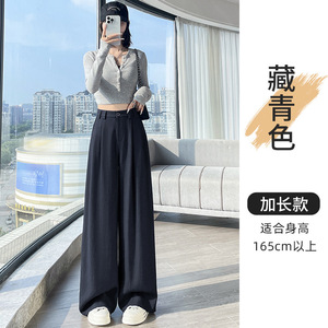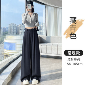 藏青色西装裤女秋季2025新款高腰显瘦宽松休闲直筒垂感拖地阔腿裤