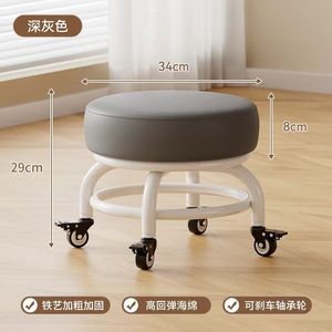 万向轮小凳子家用铁架小椅子沙发小矮凳滑轮儿童家用换鞋凳圆形矮