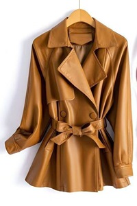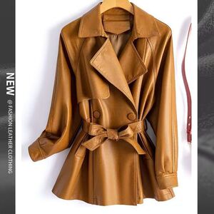新款系带海宁收腰洋气皮衣2025春秋中长款外套韩版气质宽松皮风衣