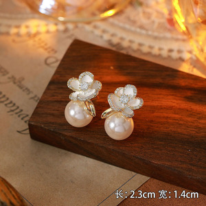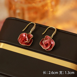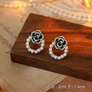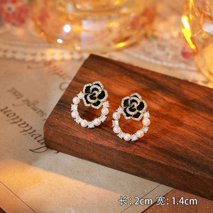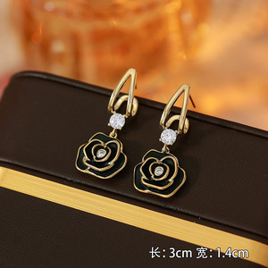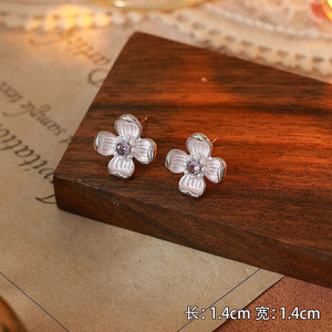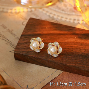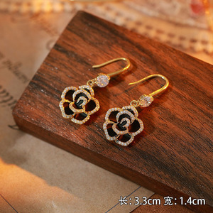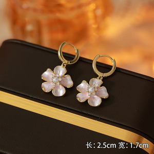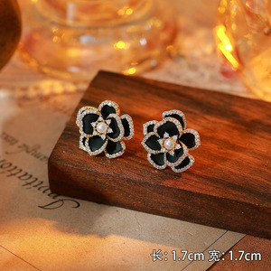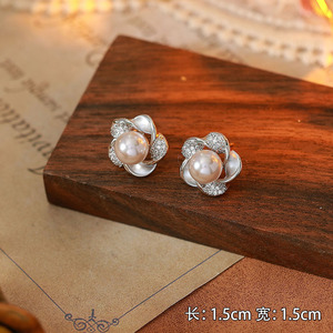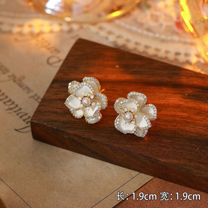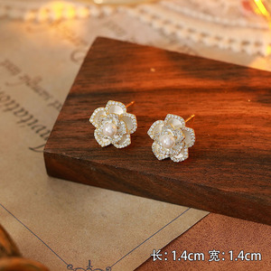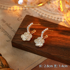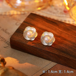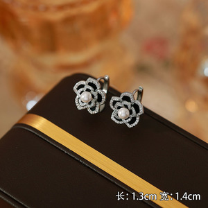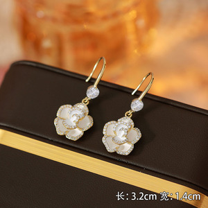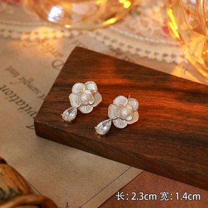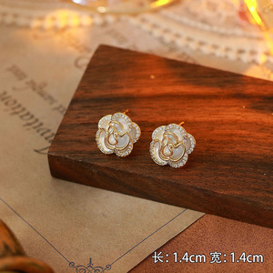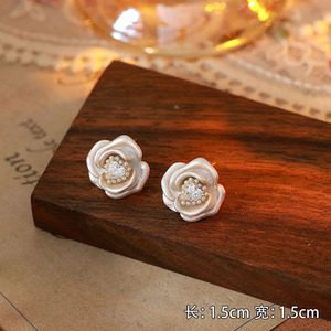艾妮贝妮925银针小香风山茶花耳钉新款2025爆款轻奢小众高级耳环