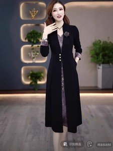 长袖高档流行假两件连衣裙女2025春秋新款高级感妈妈装轻奢休闲裙