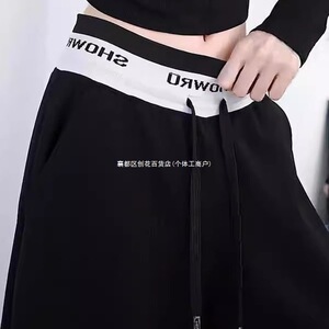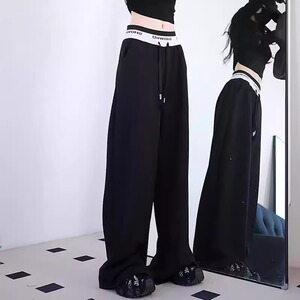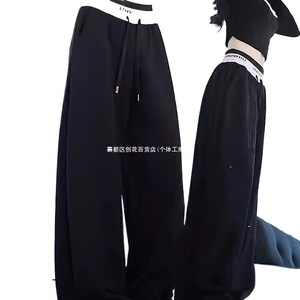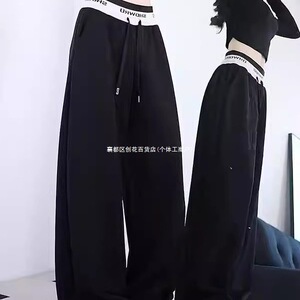 春秋减龄百搭撞色阔腿裤美式休闲宽松垂感运动减龄休闲裤黑色