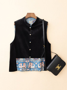 民族国风新中式两面穿金丝绒马甲双面上衣外套背心马夹加大码坎肩