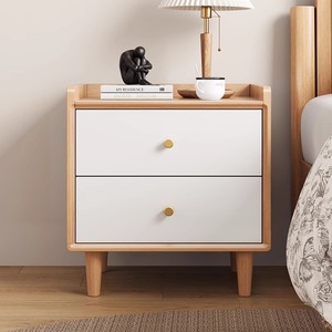 实木床头柜现代简约卧室家用置物柜岩板储物边柜高级感收纳床边柜