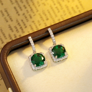 祖母绿超仙方形锆石耳钉气质百搭职场耳环轻奢高级感耳饰设计感