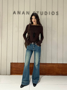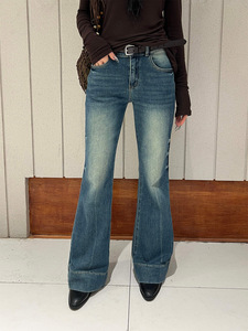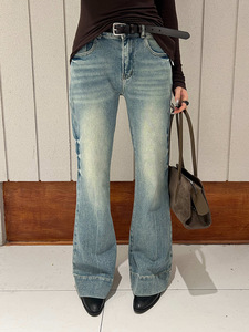 2025秋季美式复古高街游牧风喇叭裤渐变色压褶拖地裤牛仔裤G-1865