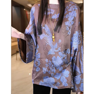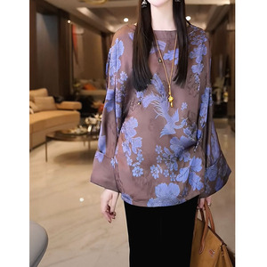 2025早秋新中式国风圆领青鸾印花宽松显瘦气质百搭长袖衬衫上衣女