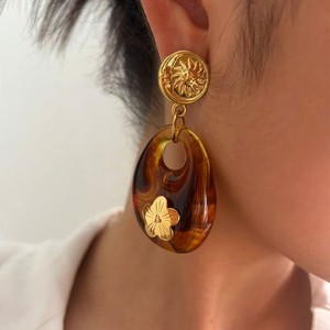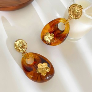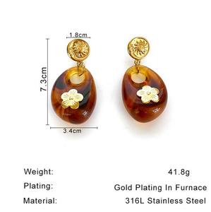 跨境欧美时尚冷淡风不锈钢花朵镶嵌树脂个性秋冬女士耳环耳饰批发