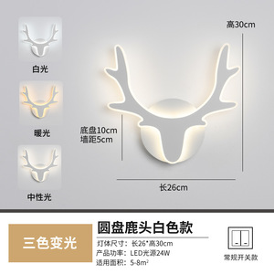 圆白鹿角-LED壁灯三色光 无频闪-2024新款