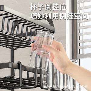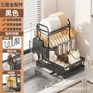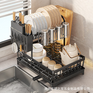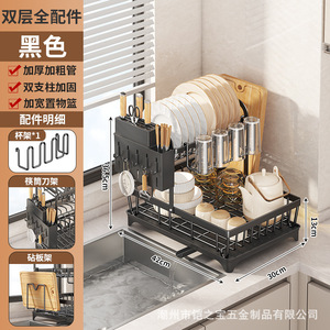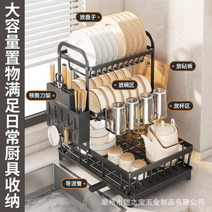 带排水盘碗碟架多功能置物架台面式沥水架刀具筷子杯一体式收纳架