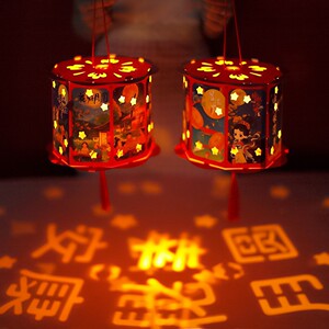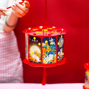 中秋节手工灯笼制作diy材料儿童幼儿园手提发光新年纸灯笼走马灯
