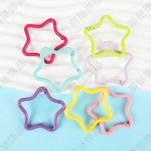 马卡龙彩色烤漆合金五角星钥匙扣糖果色背包外挂挂钩diy饰品配件
