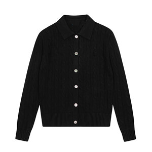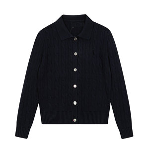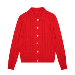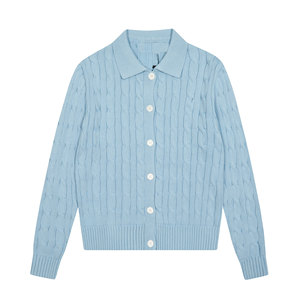 822秋冬新款LF家刺绣小标纯色翻领麻花针织开衫ootd女神长袖外套