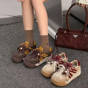 头层牛皮德训鞋2025新款真皮百搭厚底复古运动休闲鞋卡皮巴拉板鞋